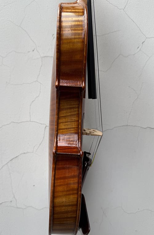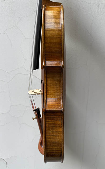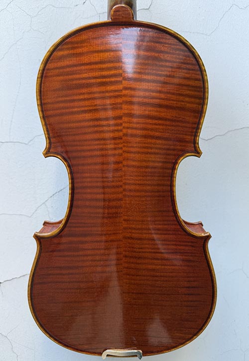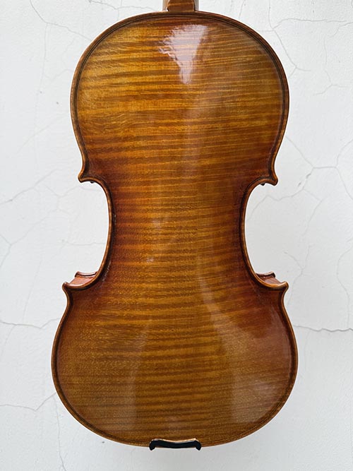 小提琴的面板和背板選自進口的優質云杉和楓木,自然干燥十二年,應用傳統琴的意大利制琴方法,并與現代高科技結合(從對木材的選擇到整個制琴的全過程全部應用高科技跟蹤測試,比如:對木材的傳聲速度,振動頻率以及波形等等)經過純手工六個月制作完成,最后經過嚴格的聲學品質測試和演奏人員鑒定后方可出售。
